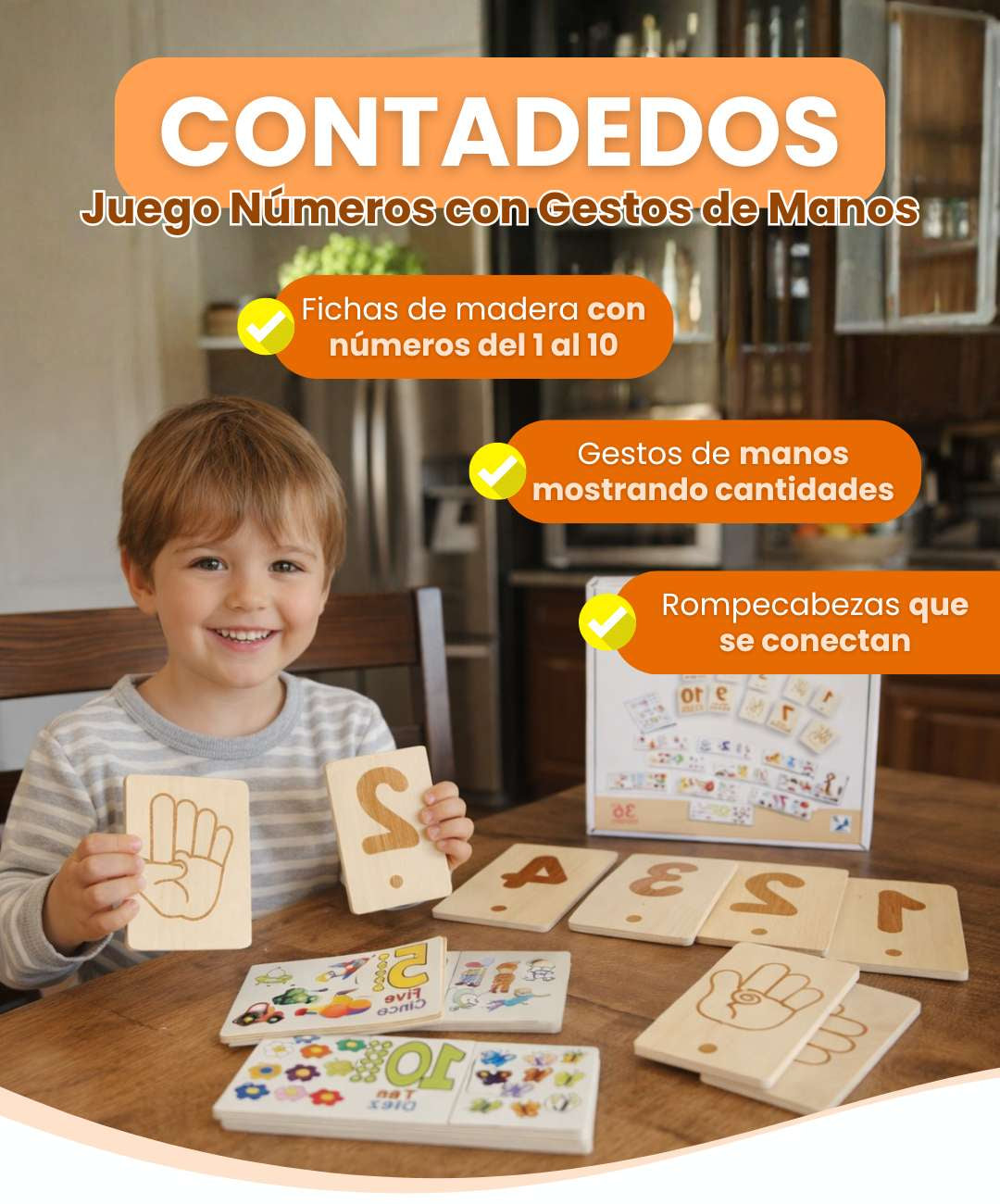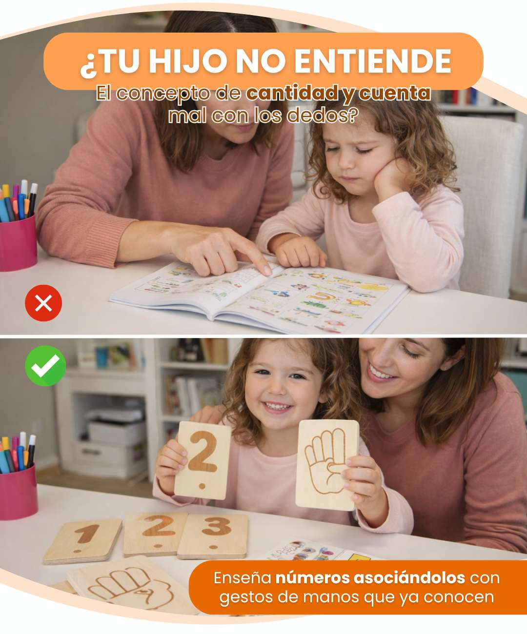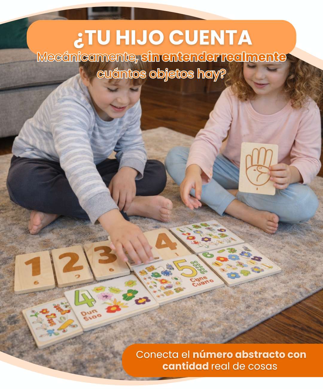 Los niños aprenden a contar viendo cómo se muestran los números con los dedos, igual que ellos hacen.