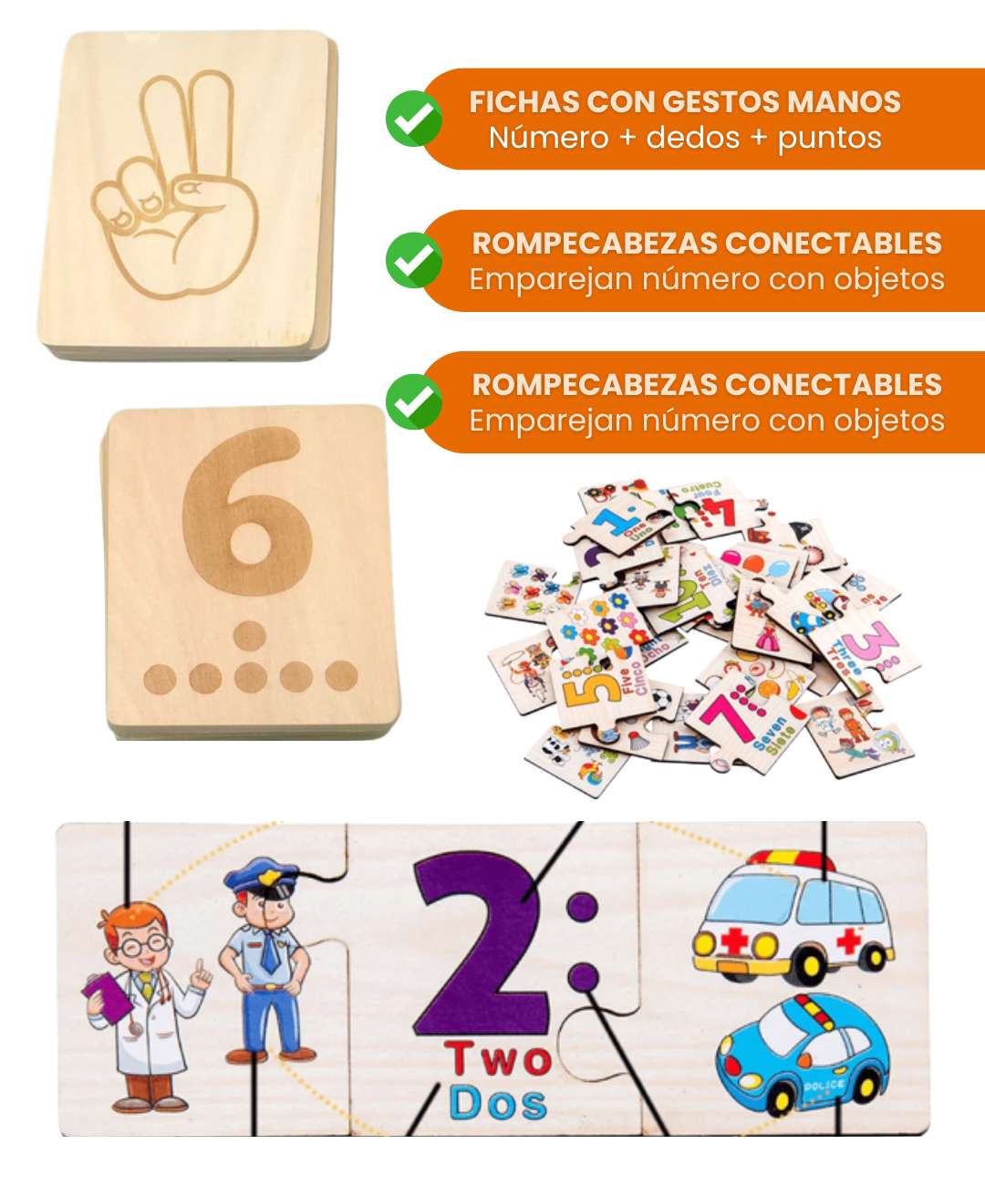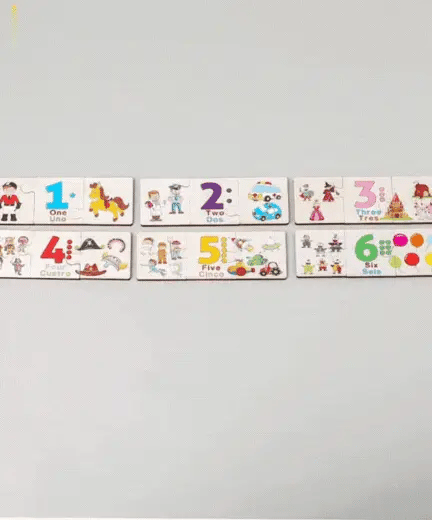 Las fichas principales muestran números y símbolos visuales que son universales. Si hay texto, puedes usarlo en cualquier idioma mientras enseñas, ya que lo visual es lo importante.