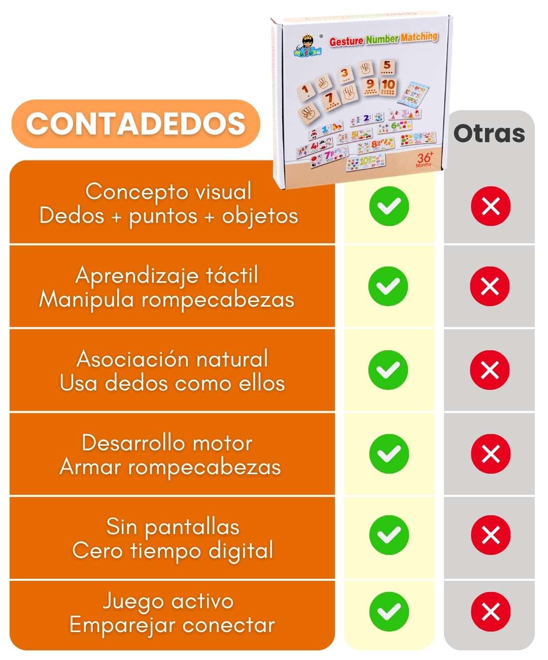 Los gestos son los estándares que usan los niños naturalmente para contar con dedos. Empiezan levantando 1 dedo para el 1, 2 dedos para el 2, etc. Es universal y lo que ya hacen intuitivamente.