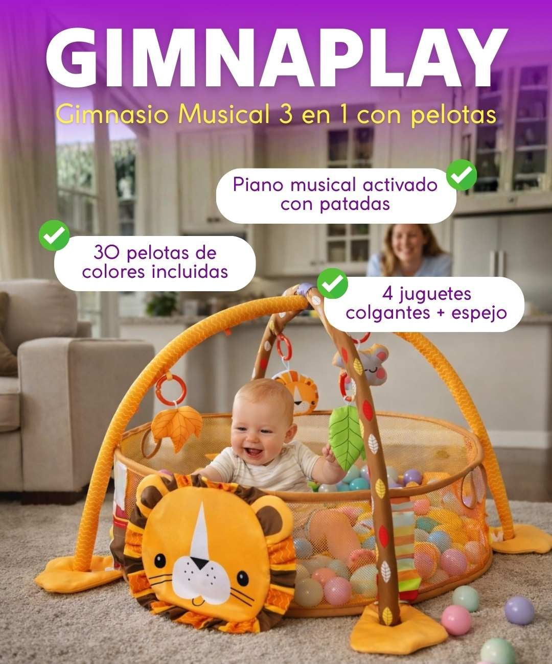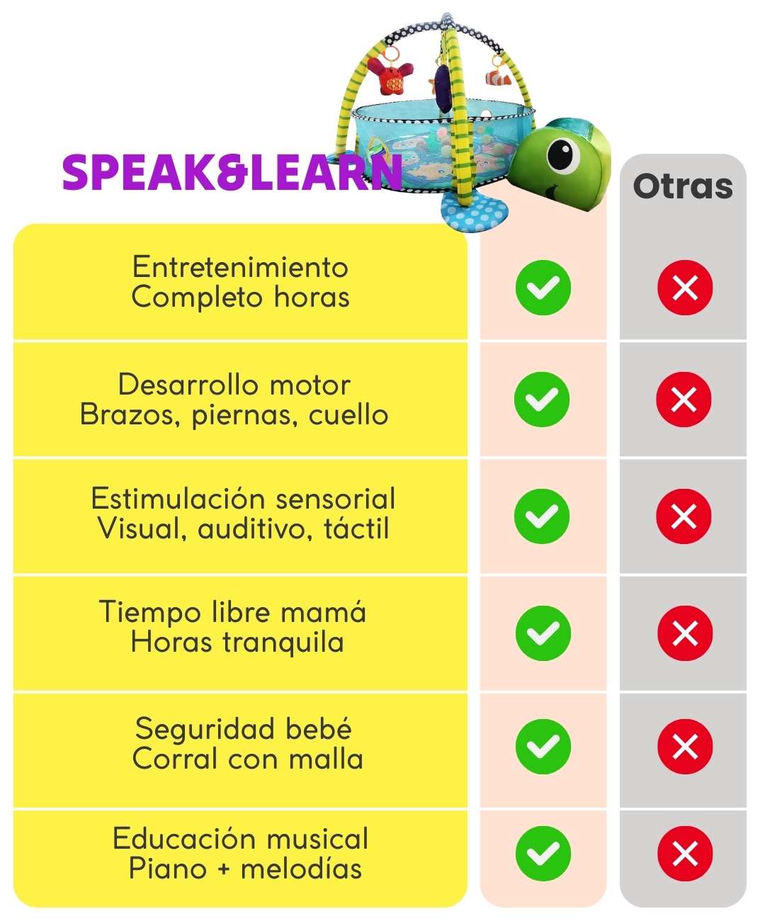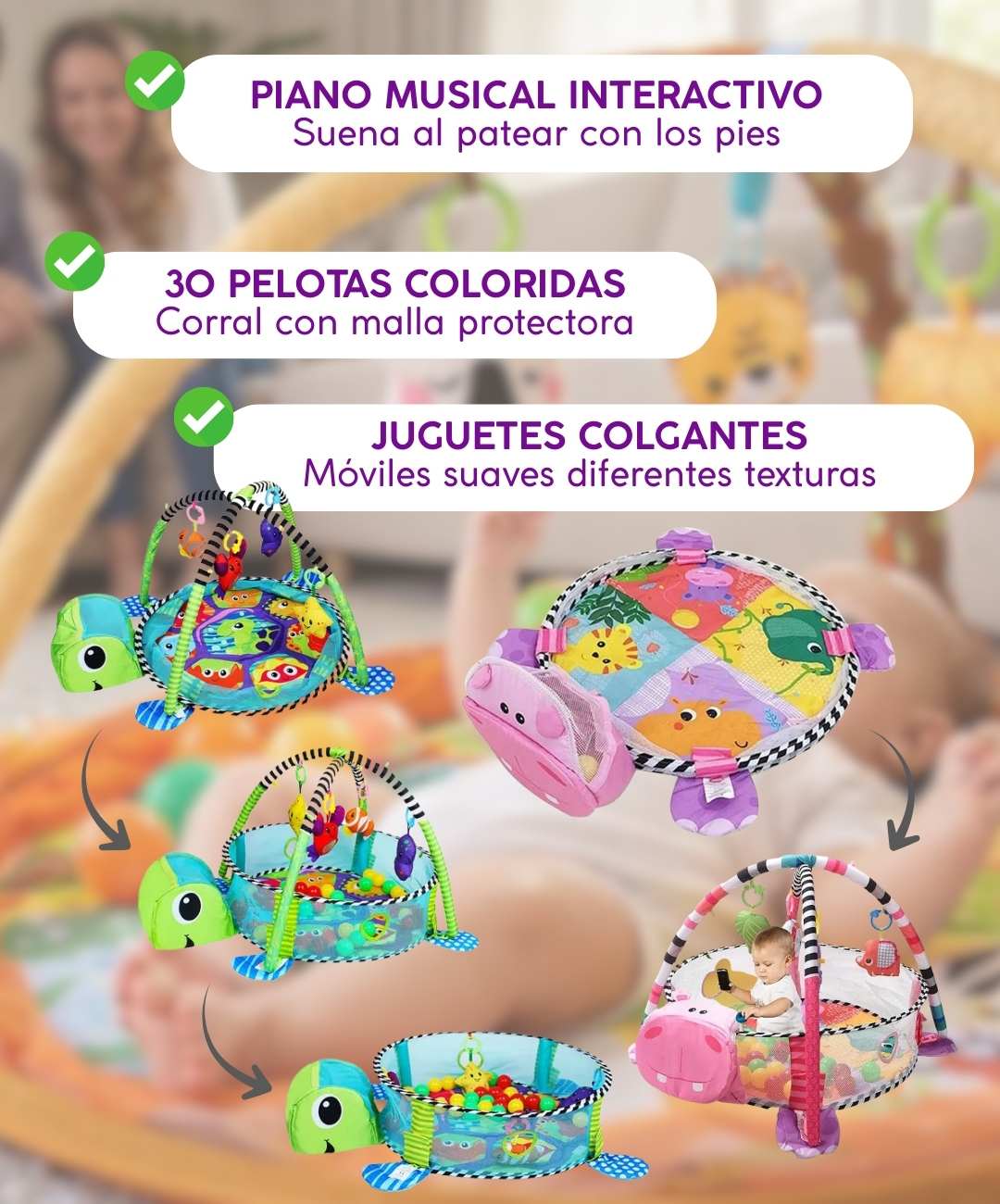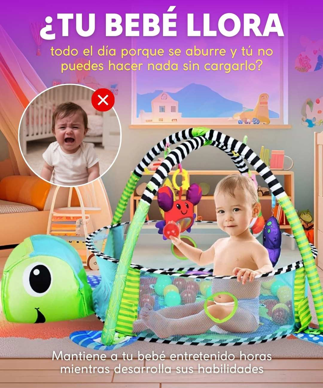 Mientras él desarrolla habilidades motoras y sensoriales jugando, tú puedes tomar café caliente, bañarte tranquila, contestar llamadas o simplemente respirar.