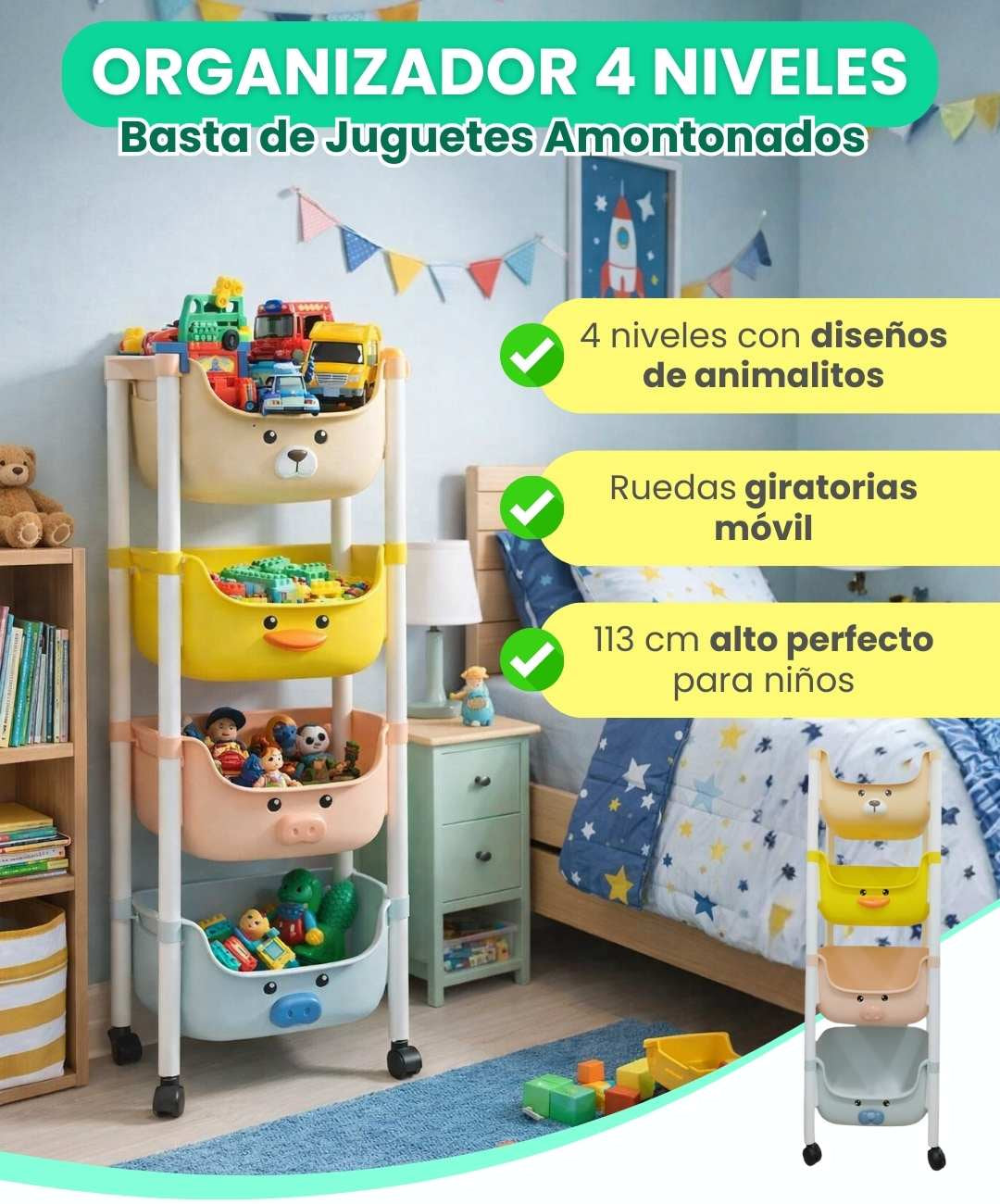 La altura de 113 cm está diseñada para que niños pequeños alcancen fácilmente todos los niveles.