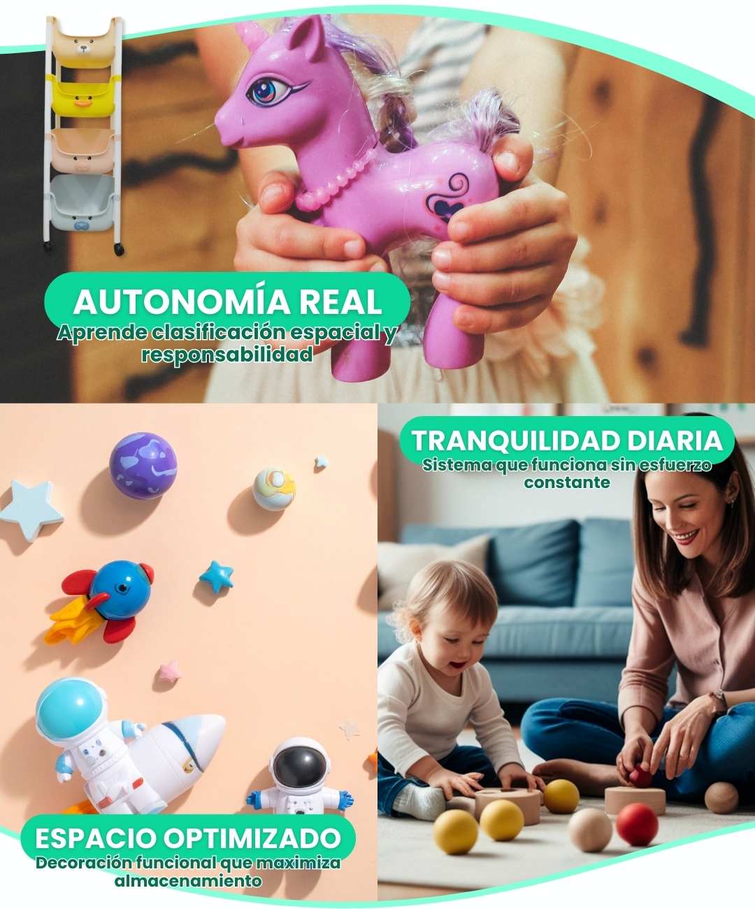 Es un PDF digital descargable con rutinas diarias, técnicas de clasificación por edades, y estrategias comprobadas para que tu hijo desarrolle hábitos de orden permanentes.