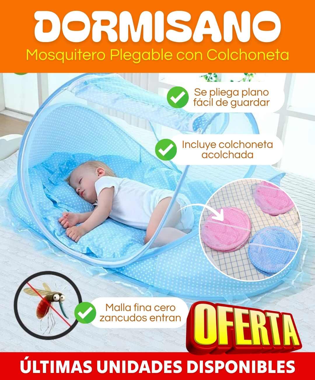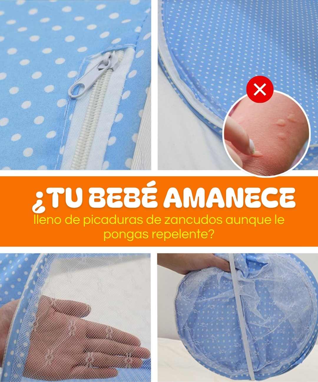 Lo abres en la cama donde vaya a dormir el bebé y listo, protección garantizada. Ya no más noches en vela matando zancudos o bebé desvelado rascándose.