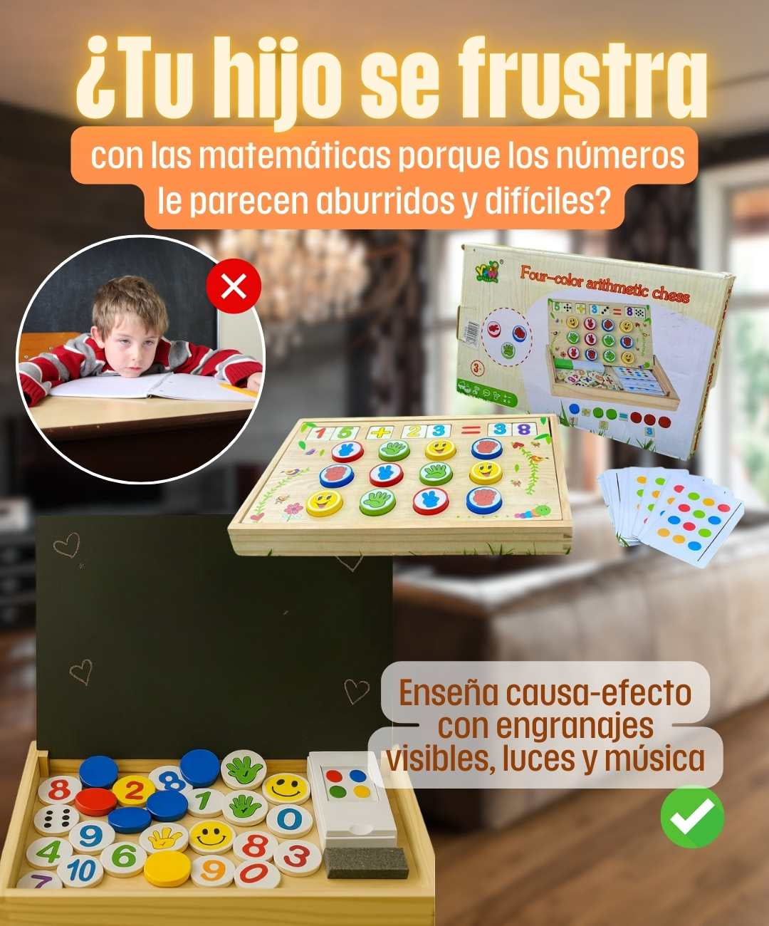 Es perfecto para nivel preescolar hasta primaria. Los más pequeños (4-6 años) aprenden números básicos y sumas sencillas. Los más grandes (7-10 años) practican sumas, restas complejas y pueden empezar multiplicación.