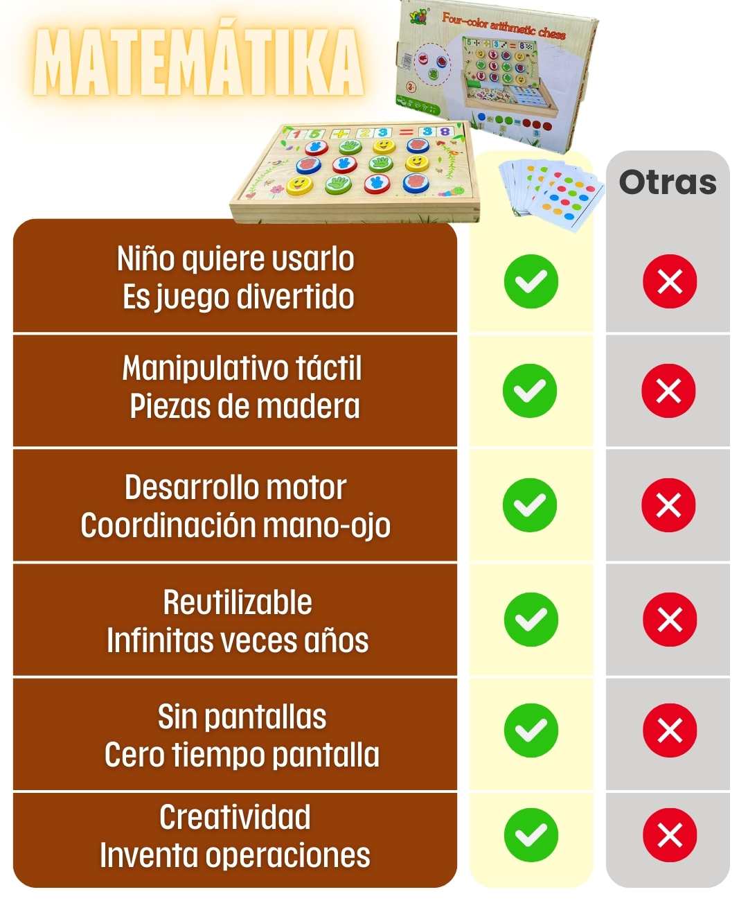 Generalmente incluye tarjetas con ejemplos de operaciones y actividades sugeridas. Pero el juego es tan intuitivo que los niños inventan sus propias formas de usarlo. Puedes crear desafíos personalizados según su nivel.