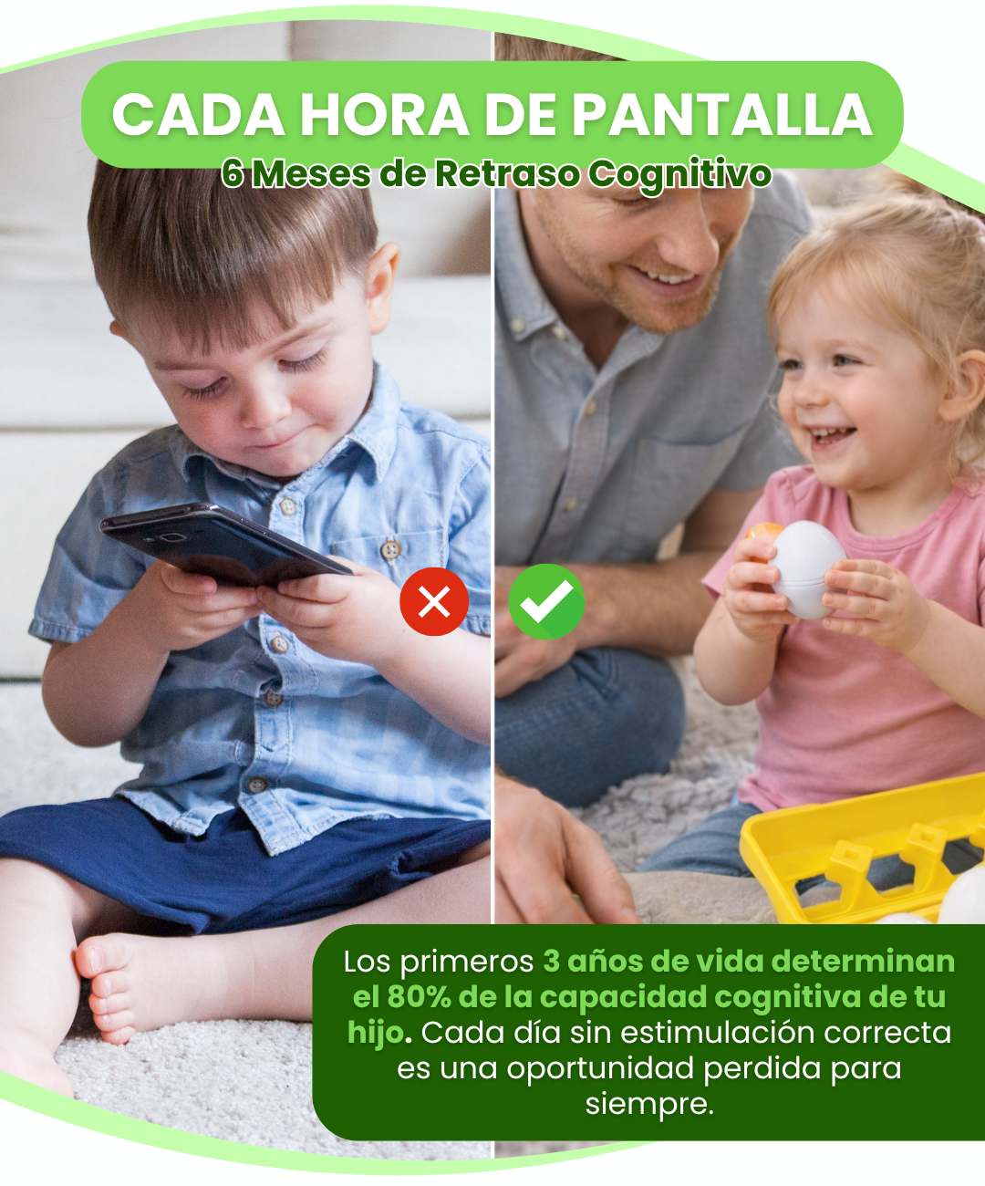 Totalmente seguro. El tamaño de cada huevo está diseñado específicamente para evitar riesgo de asfixia (más grande que el diámetro de la tráquea infantil). Material certificado no tóxico.