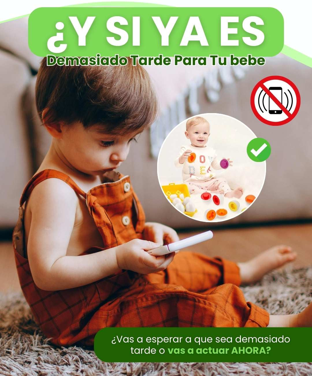 Desde los 18 meses hasta los 4 años. El juego crece con tu bebé: primero aprende colores, luego formas, después lógica de emparejamiento y finalmente secuencias complejas.
