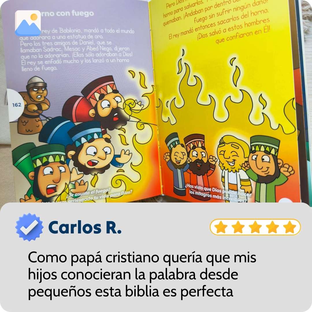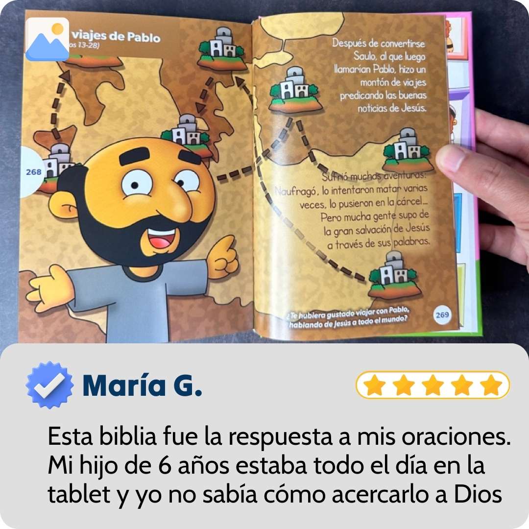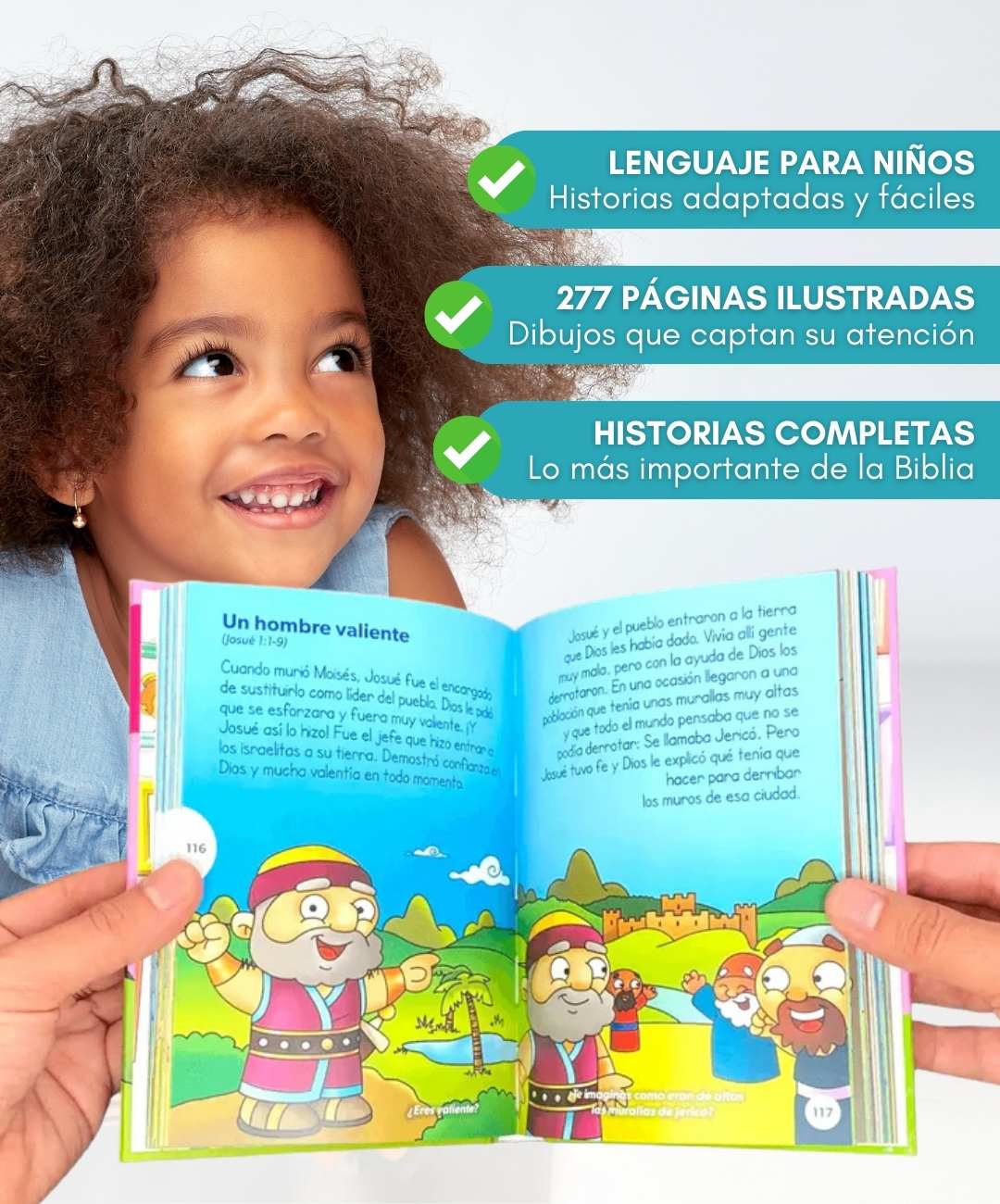 Esta biblia especial está diseñada para que los niños conozcan las historias más importantes de la palabra de Dios de forma entretenida y fácil de entender.