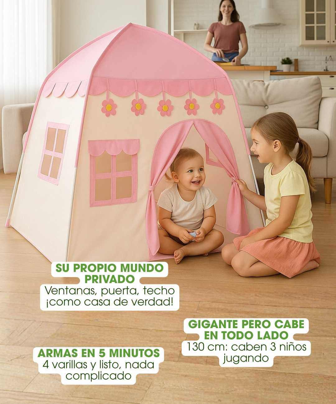Imagina a tus hijos en SU PROPIA CASITA donde son los reyes. Un espacio mágico donde hacen campamentos, juegan a la casita, leen bajo las estrellas o simplemente se esconden de los adultos.