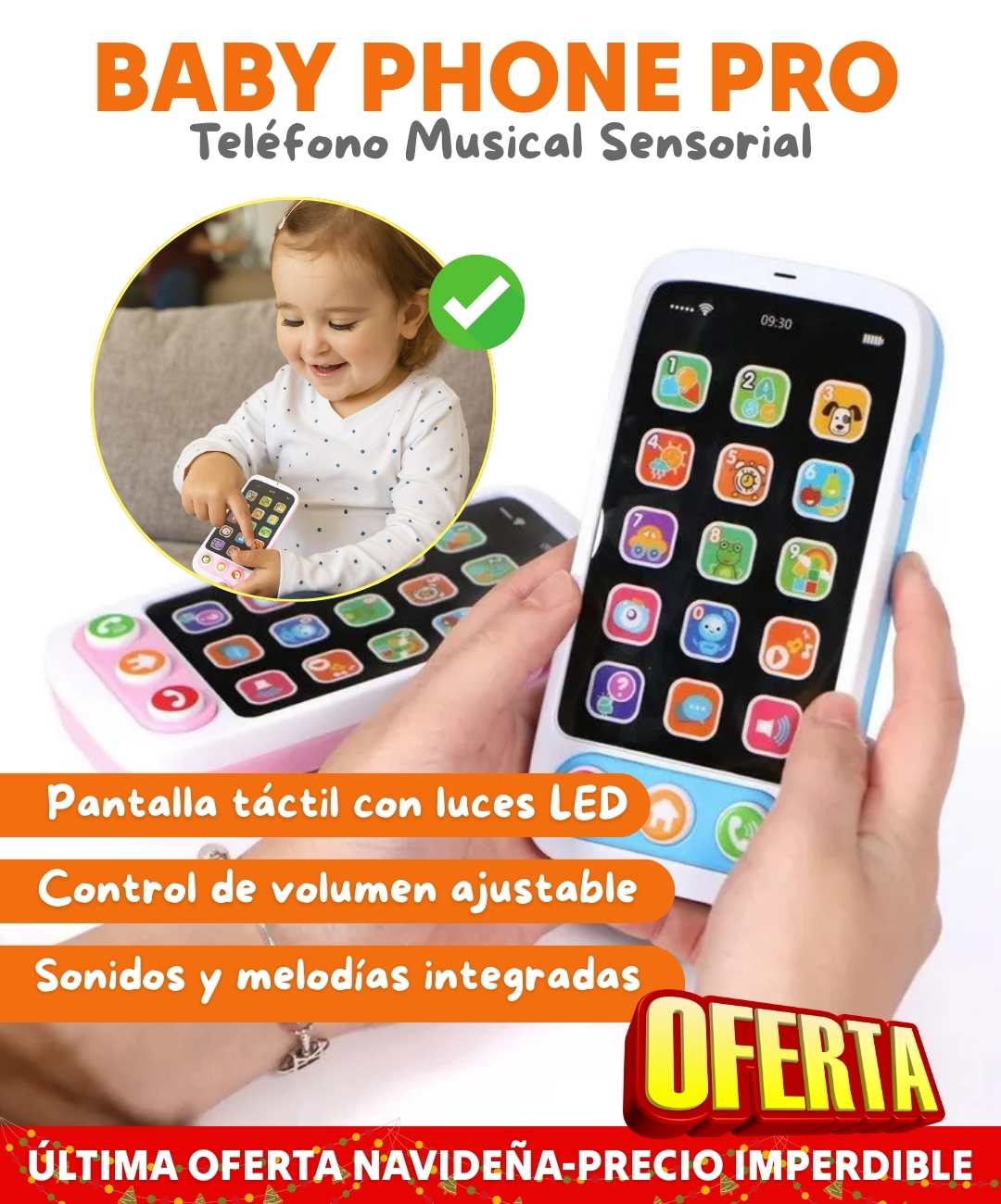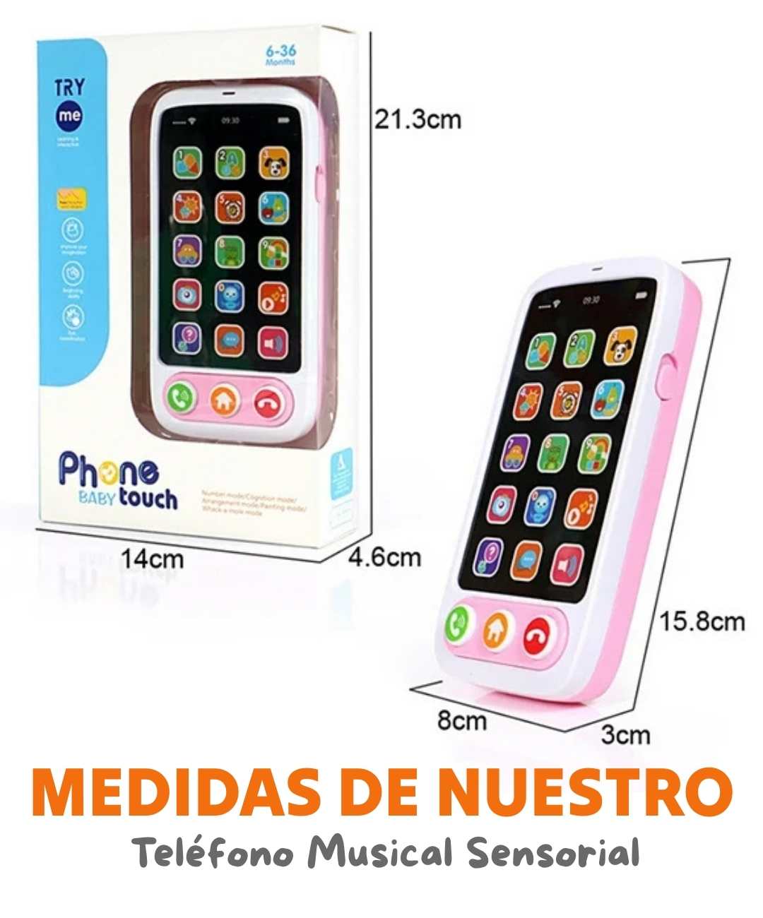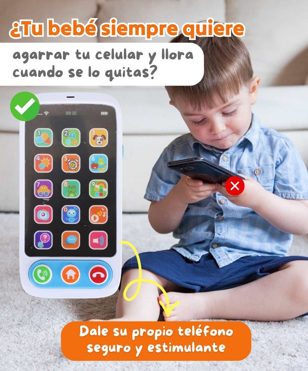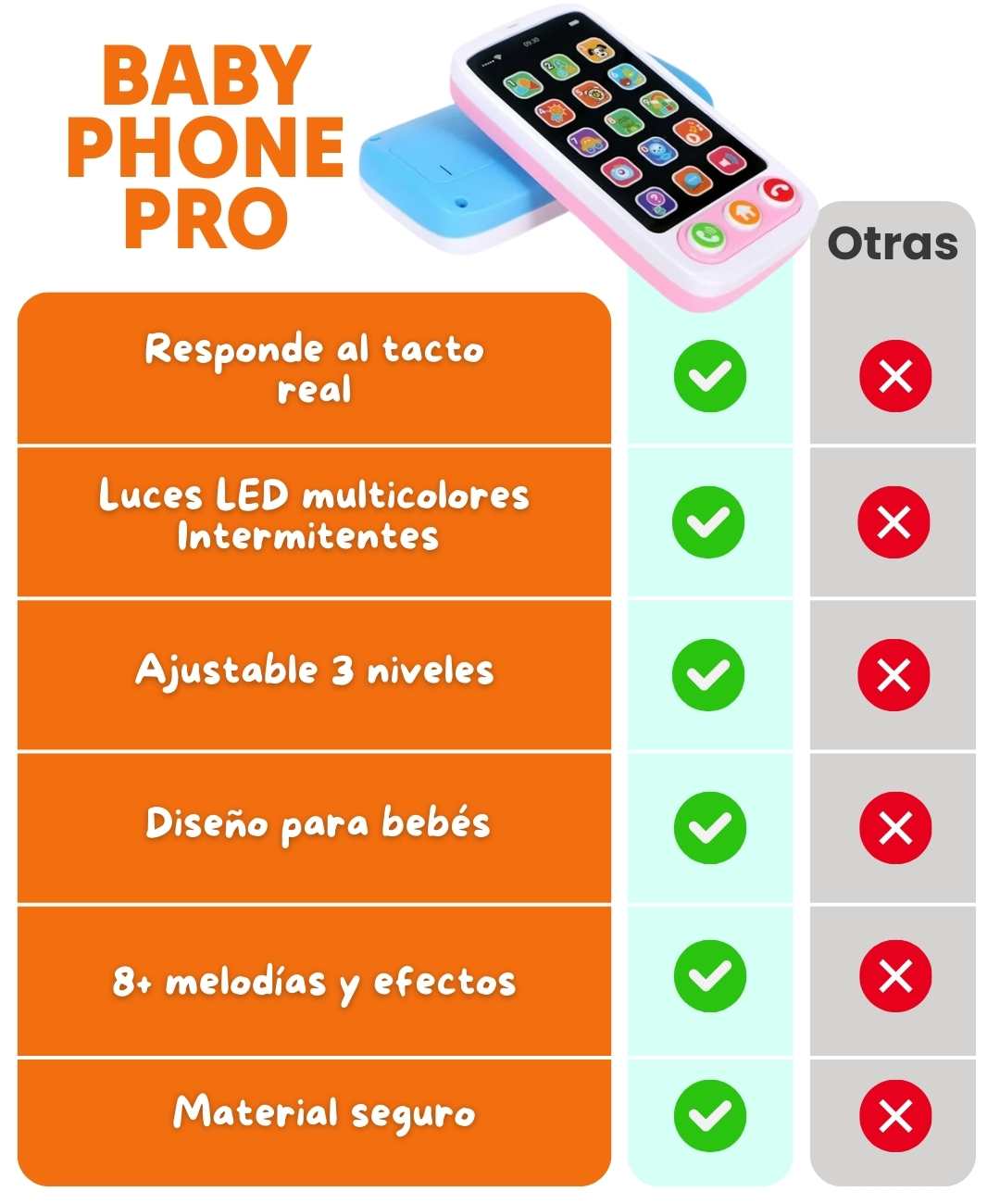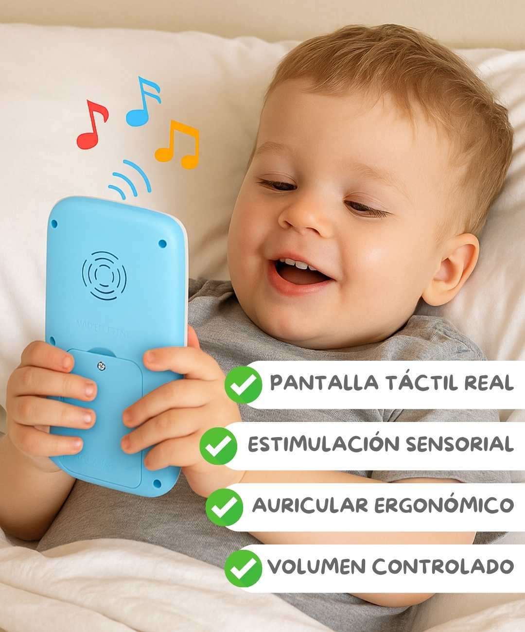Este no es un juguete común. Tiene las mismas características que lo atraen de tu celular (luces, sonidos, botones reales), pero con contenido educativo. Más de 2,800 mamás confirman que sus bebés lo prefieren sobre otros juguetes.