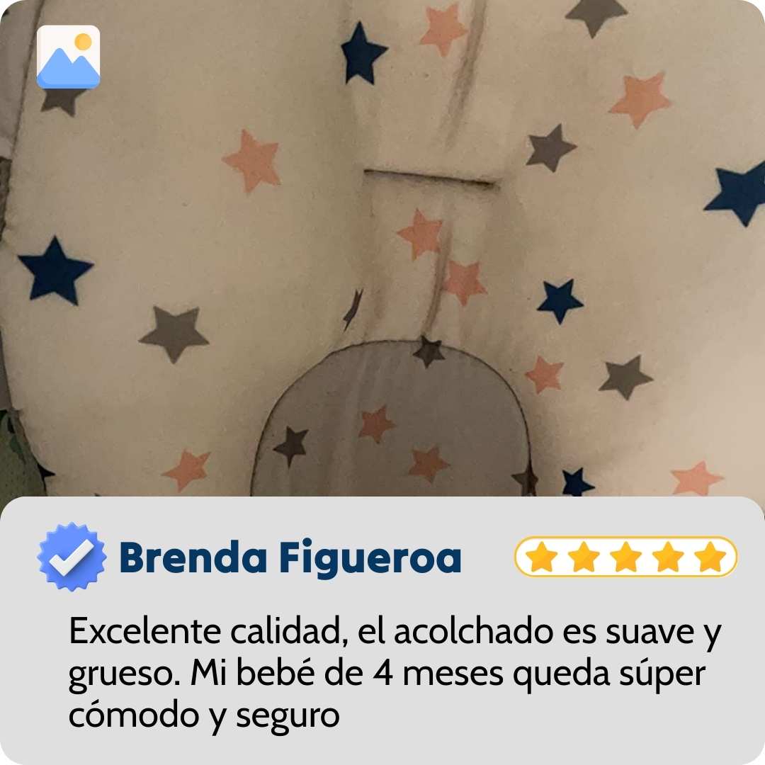 El cojín es ajustable y sirve desde el nacimiento hasta los 12 meses (o hasta 12 kg). Los cinturones laterales se adaptan al crecimiento de tu bebé.