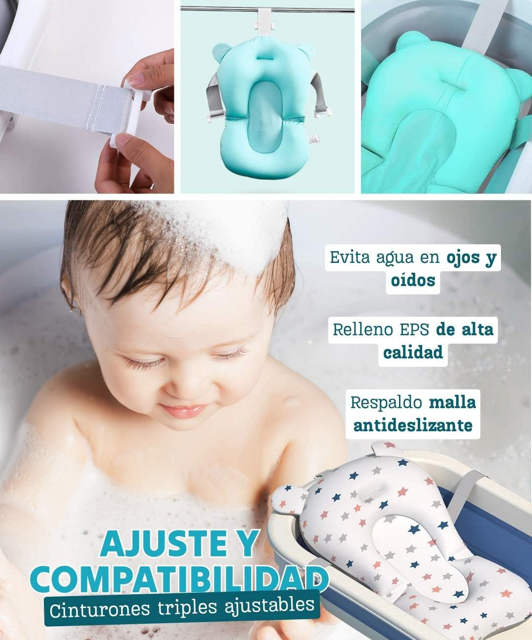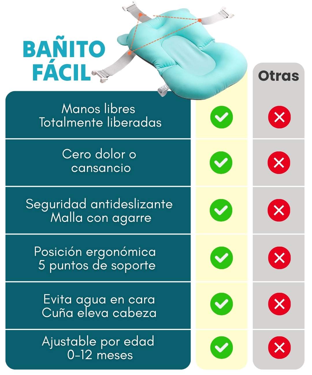 Totalmente seguro. El material de malla antideslizante se adhiere a la bañera y el sistema de 5 puntas sostiene firmemente al bebé. Miles de mamás lo usan diariamente sin incidentes.