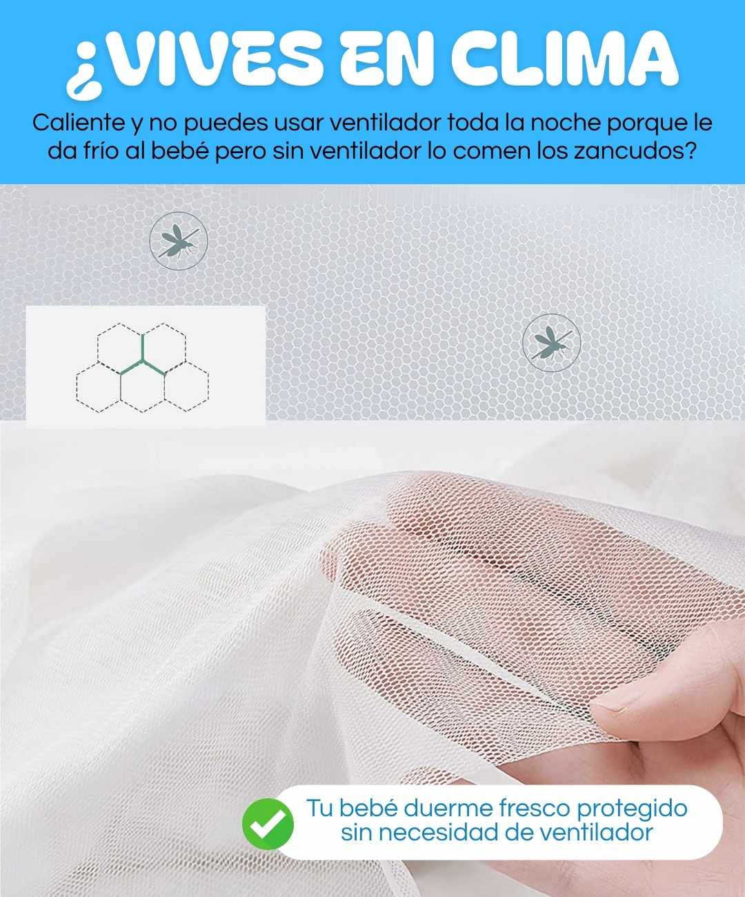 Sí, la malla crea una barrera física 100% efectiva contra mosquitos, zancudos y cualquier insecto. A diferencia de repelentes que se evaporan, esta protección es constante las 24 horas.