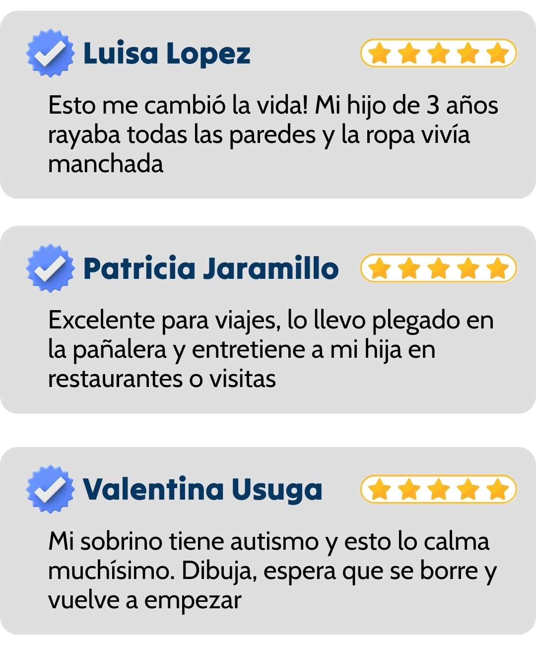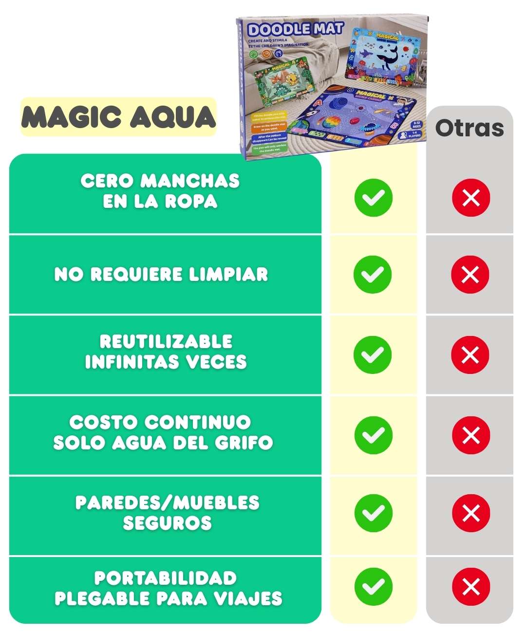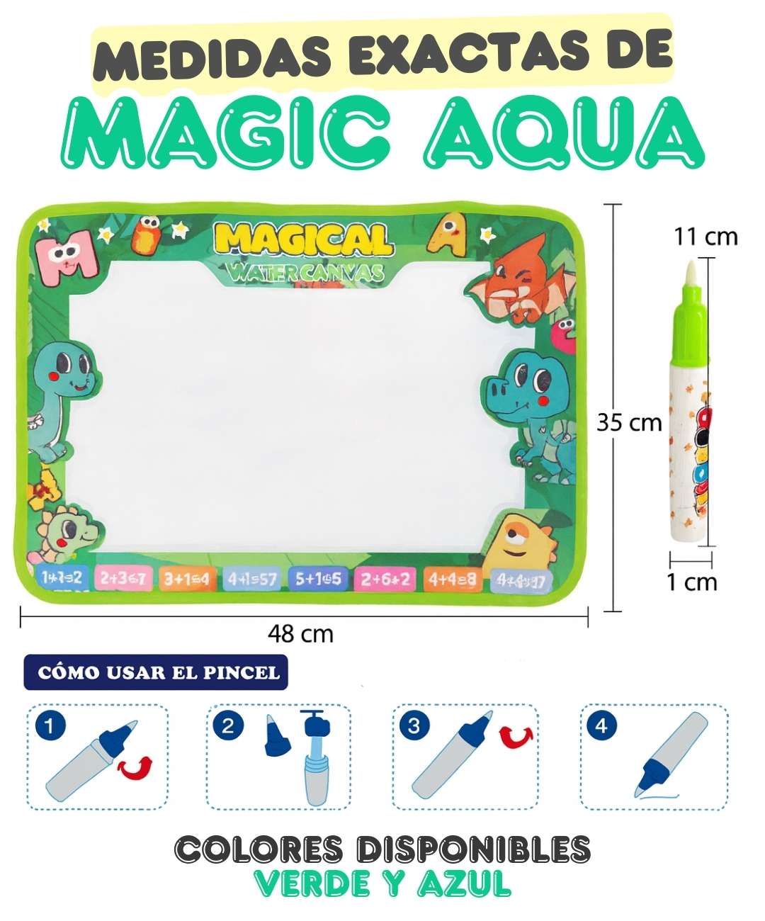 Este tapete revolucionario funciona únicamente con agua. Los niños dibujan con los marcadores mágicos llenos de agua y los trazos aparecen de colores en el tapete.